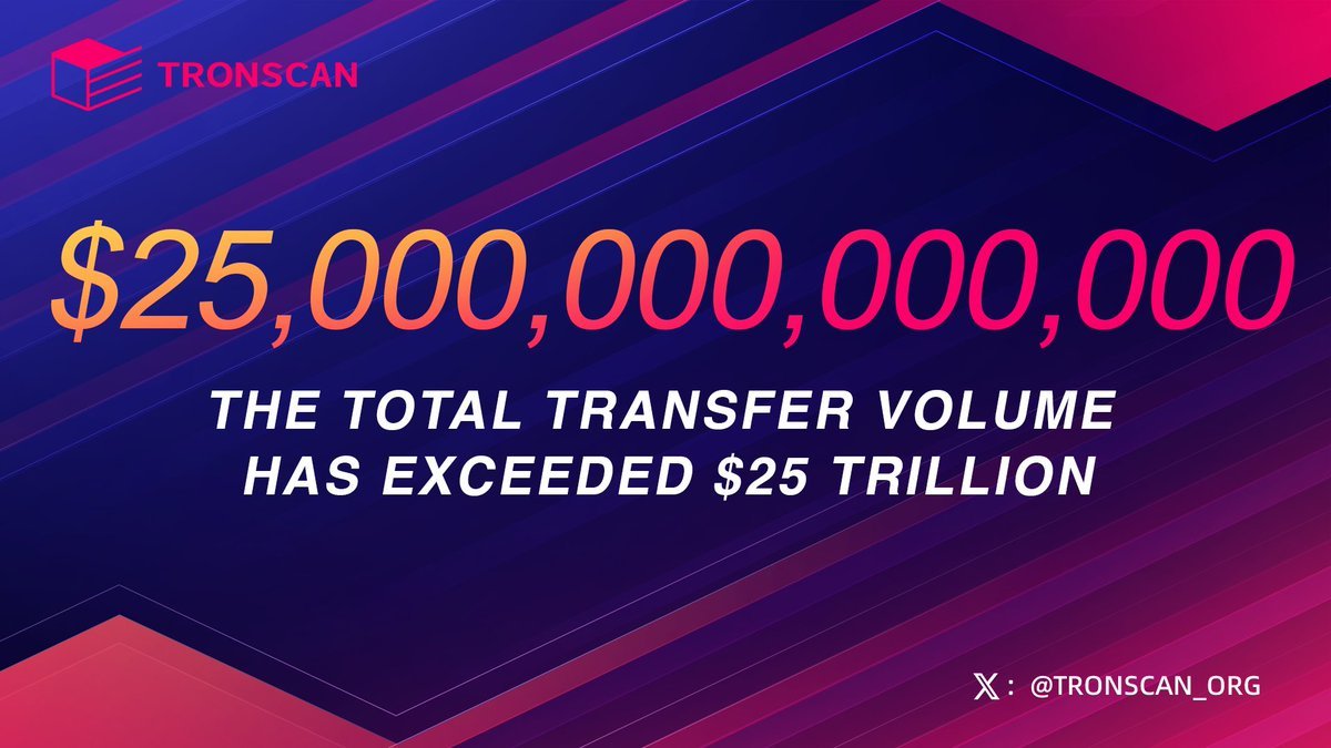 TRONSCAN D44.96K @TRONSCAN_ORG🌟 The total transfer volume on TRON has surpassed $25 trillion. TRON continues to showcase its potential in revolutionizing the digital realm. Dive deeper into the TRON universe & discover more through TRONSCAN. https://t.co/L3lDNIXnI4