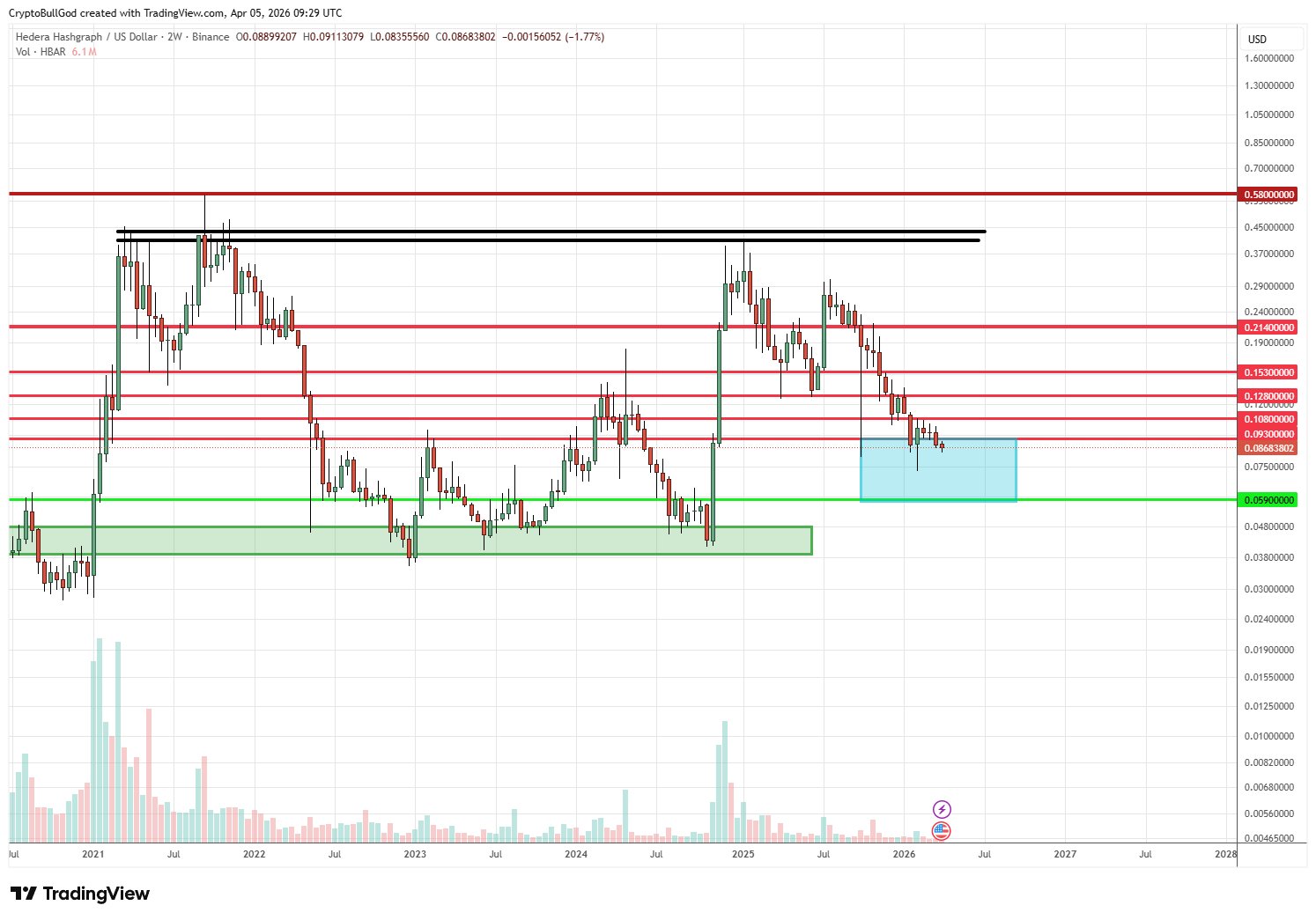6 2 886 Lire l'original >Tendance de HBAR après le lancementBaissier