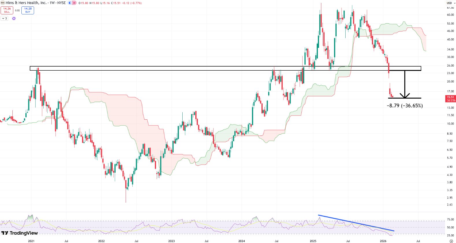 Eric Bryant | Multibagger Research FA_Analyst Educator A4.83K @MultibaggerRsch82 1 4.25K オリジナル >リリース後のHIMSのトレンド強気- リリース後のHIMSのトレンド強気