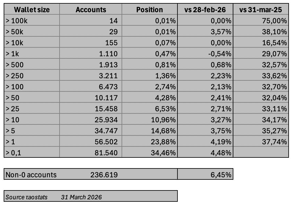 크레딧: @RBS_HODL | 출처: @taostats | 2026년 3월 31일.