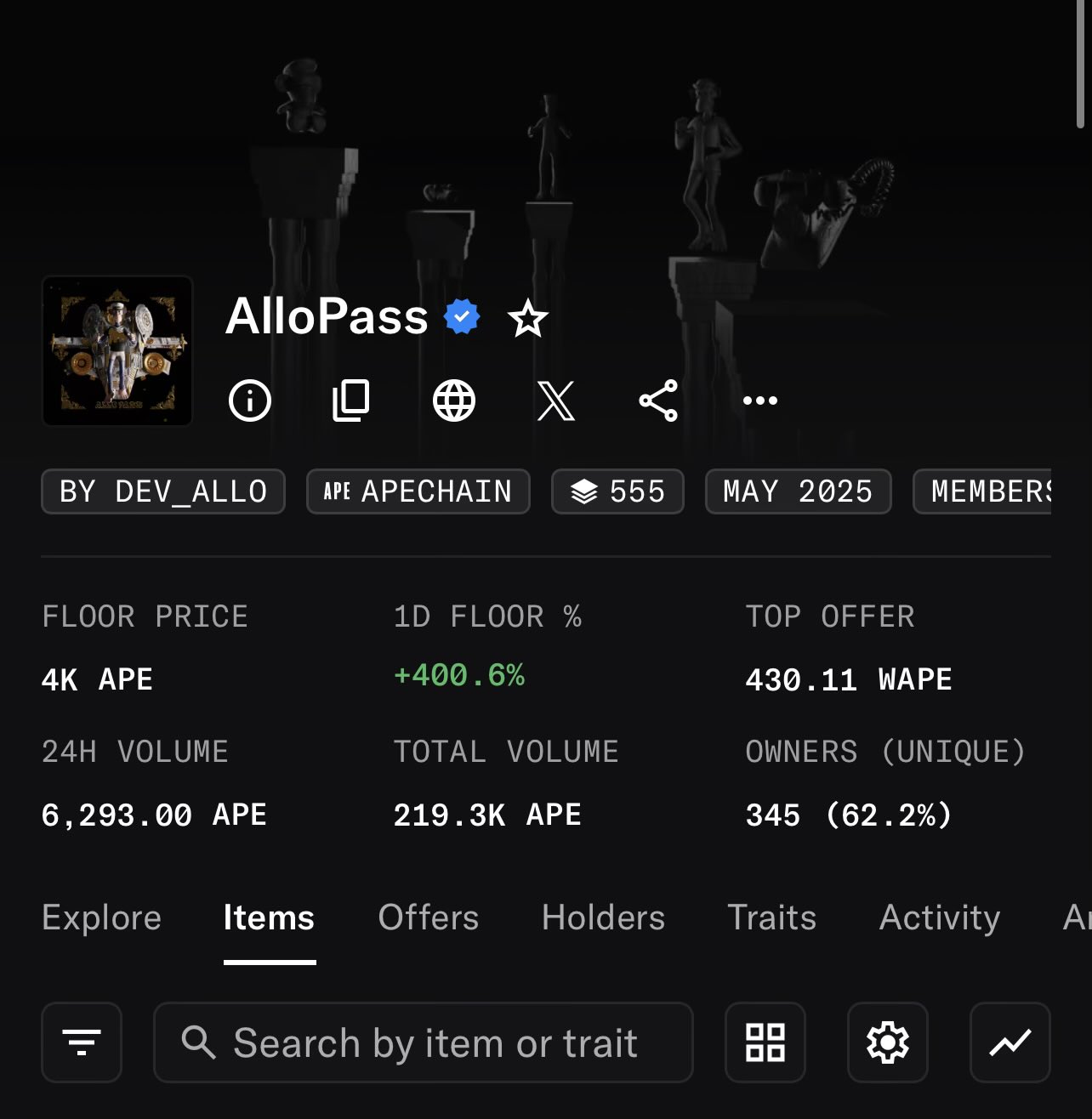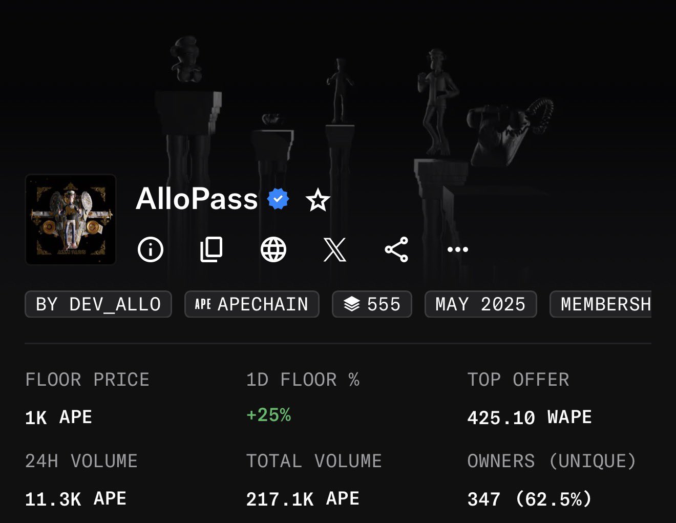 AlloPass has reached 1k APE floor 🦍
