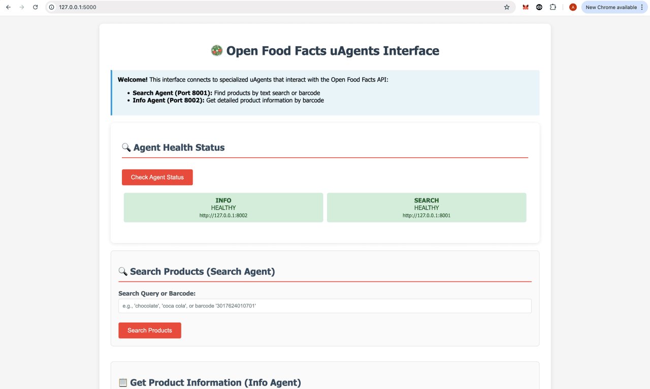 Build a Frontend Web Application. Use uAgents + @OpenFoodFacts API.