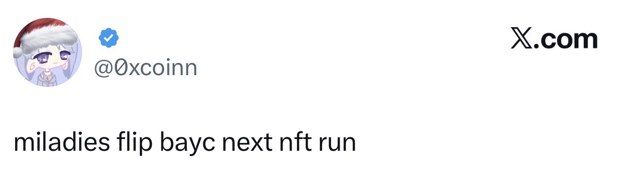 Milady mfers are talking about flipping BAYC in the next NFT run while they’re out here getting flipped by Quirkies recently