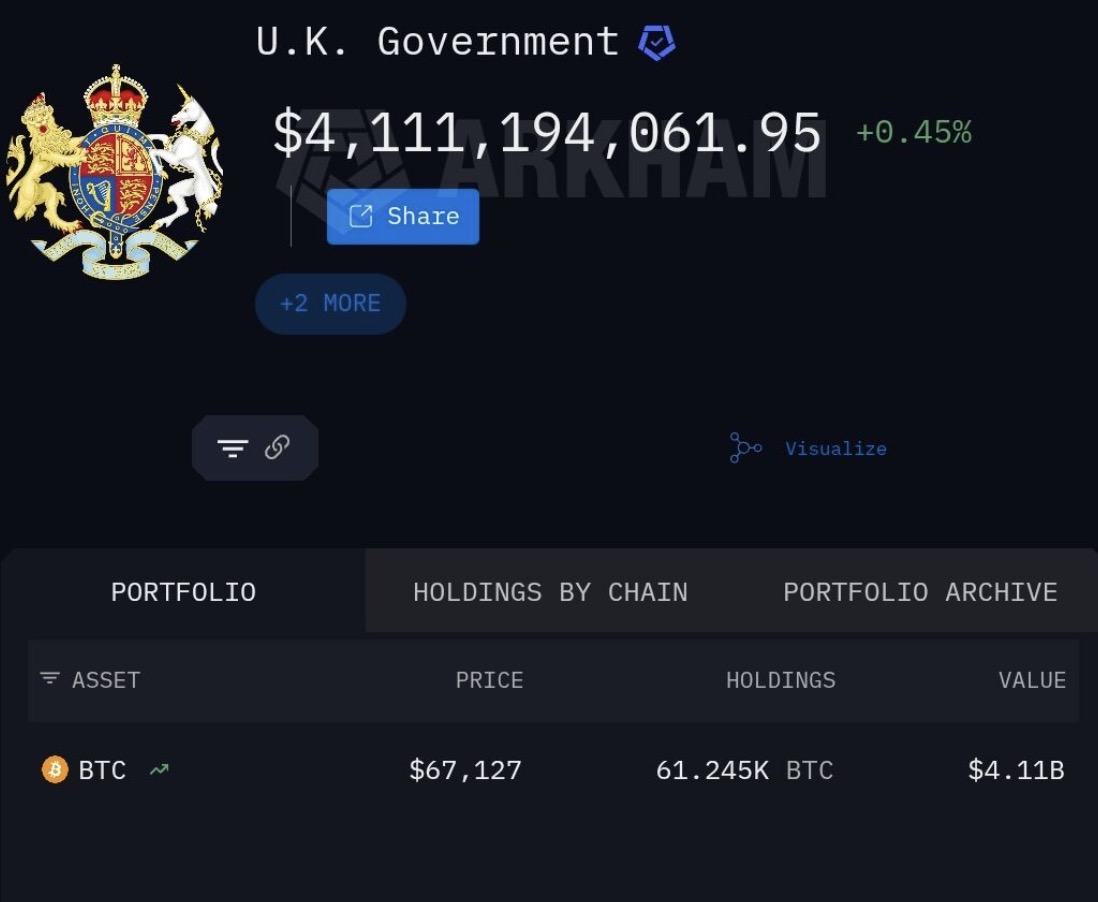 Bitcoin of the UK government is incurring an unrealized loss of up to $3.5 billion, according to Cointelegraph.