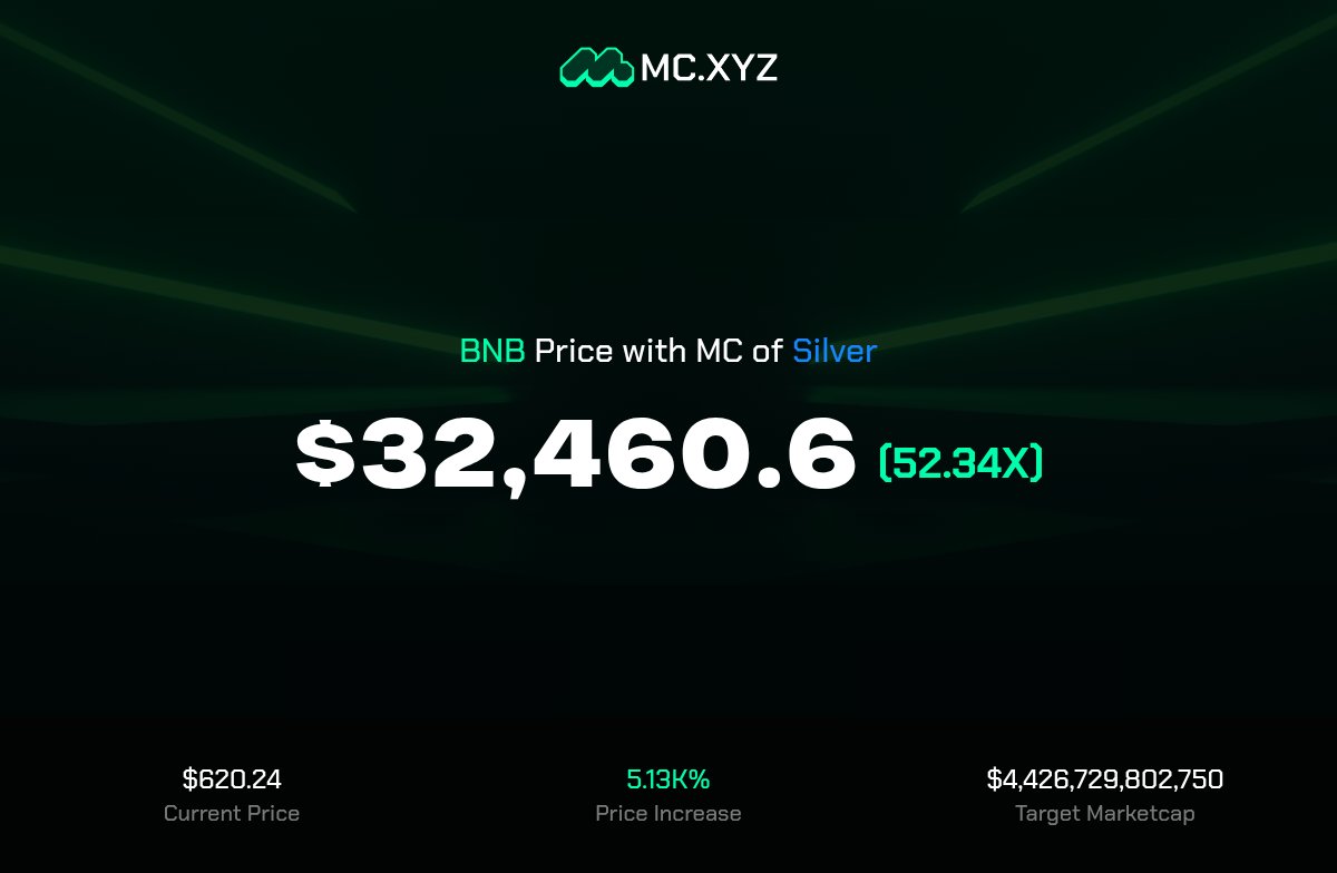 BNB is predicted that if it reaches the market cap of silver, its price will surge to $32,460, achieving a 52‑fold increase.