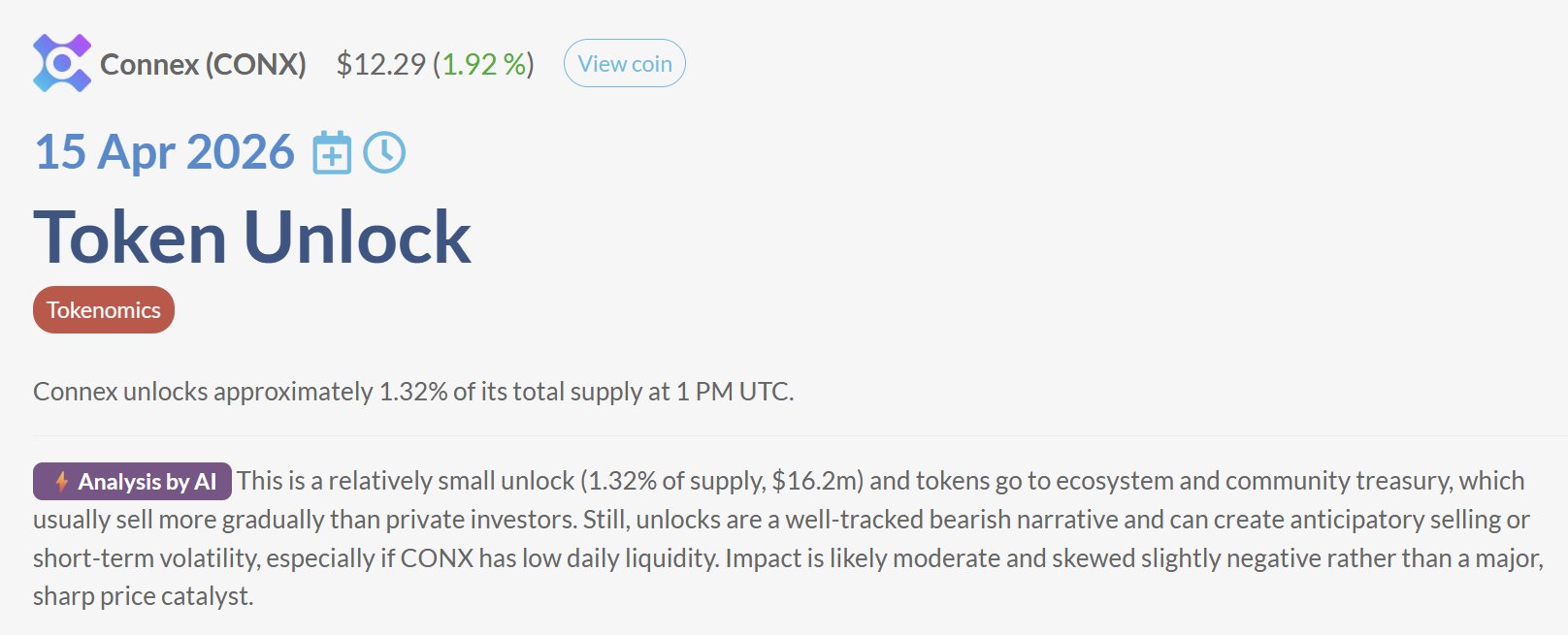 Over $220 million worth of tokens will be unlocked this week, watch out for potential sell pressure on coins like CONX, ARB, SOL.