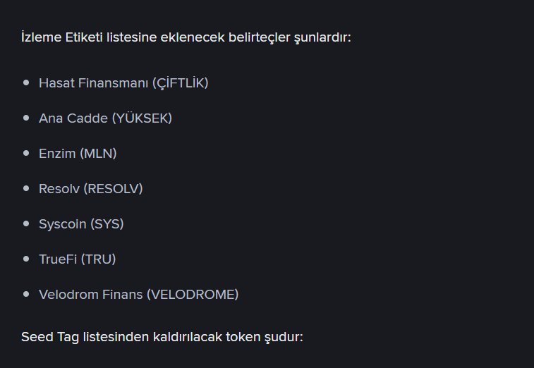 #Binance Exchange added the Altcoins listed below to the “Watchlist”.