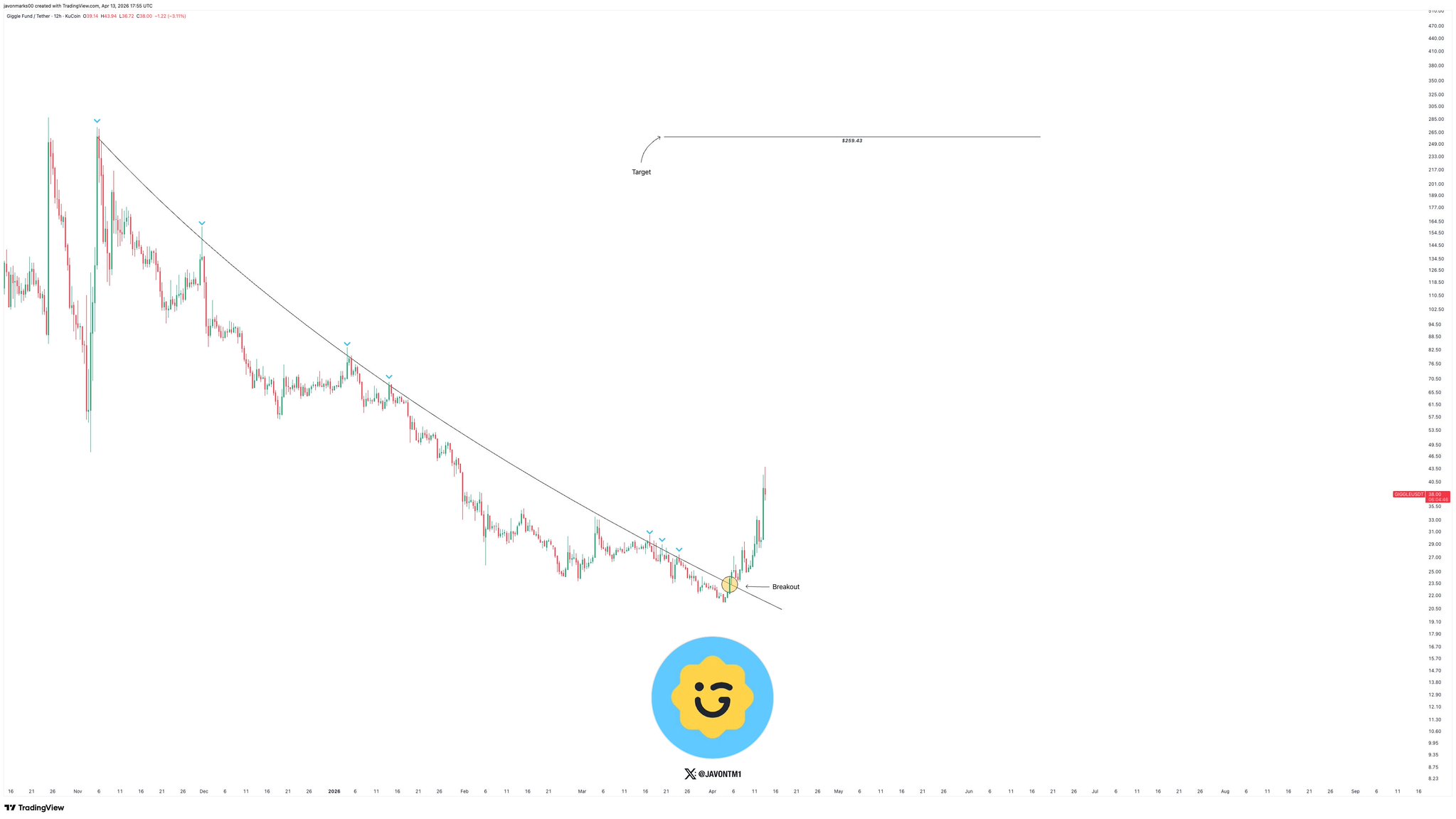 $GIGGLE appears to have made a low at the $21 - $22 level. The descending wedge has broken ✅