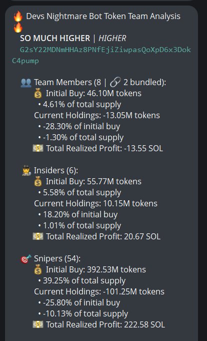 $Higher (CA G2sY22MDNmHHAz8PNfEjiZiwpasQoXpD6x3DokC4pump) doesn't have snipers, insiders have 1% per devsnightmare. No kols.