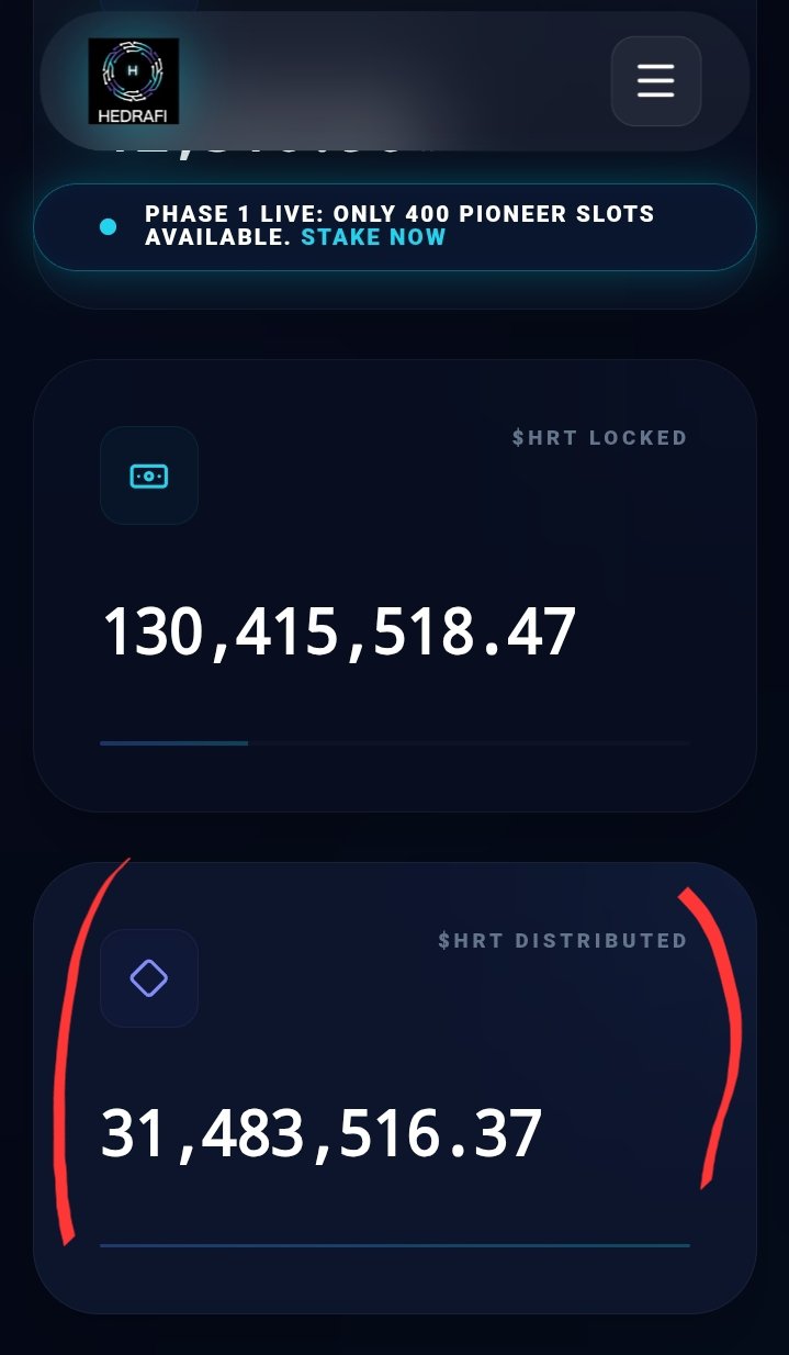 Approx. 120,000,000 $HRT remains allocated for Pioneer incentives.