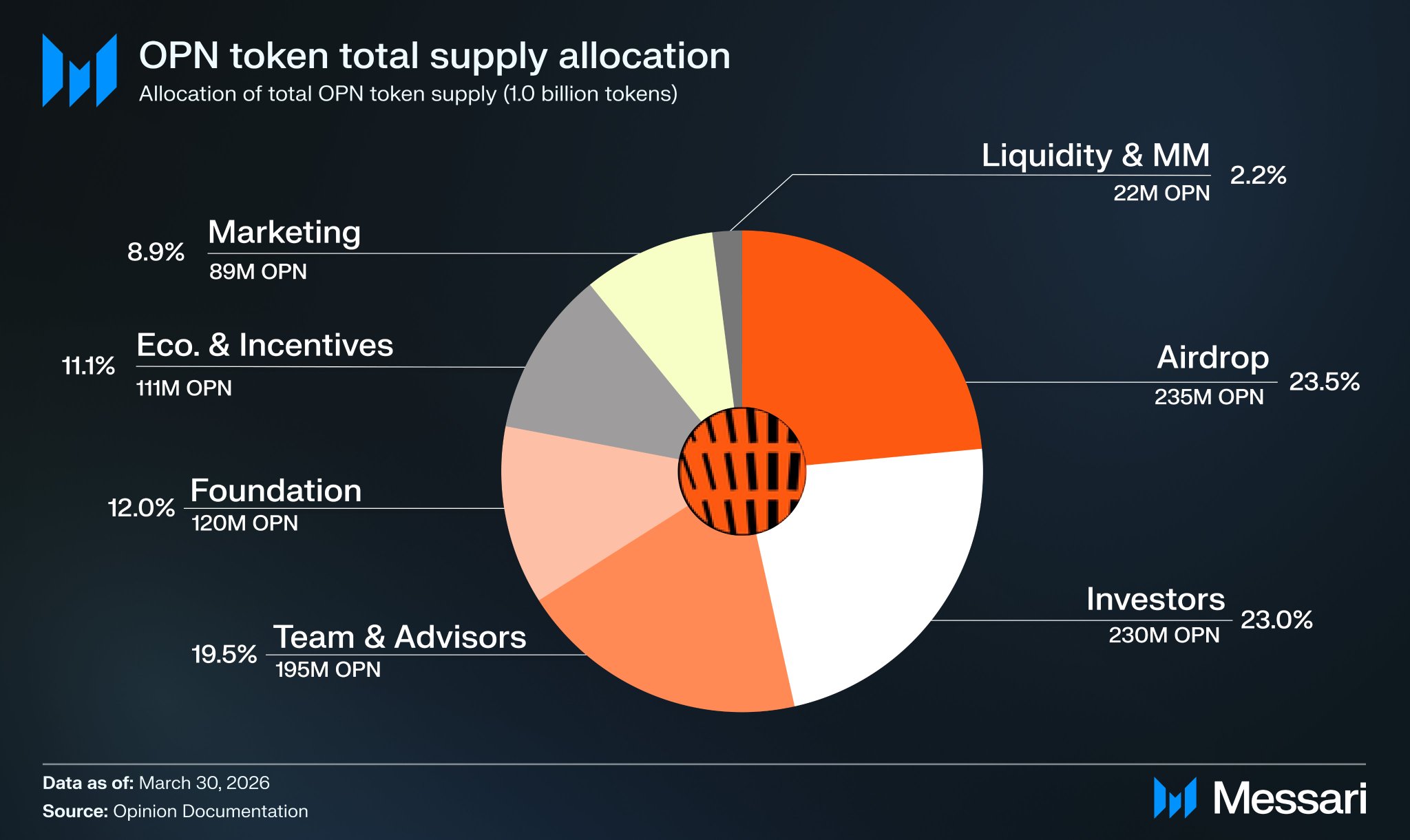 19.9% (198.5M OPN) of the 1.0B total supply entered circulation at launch.