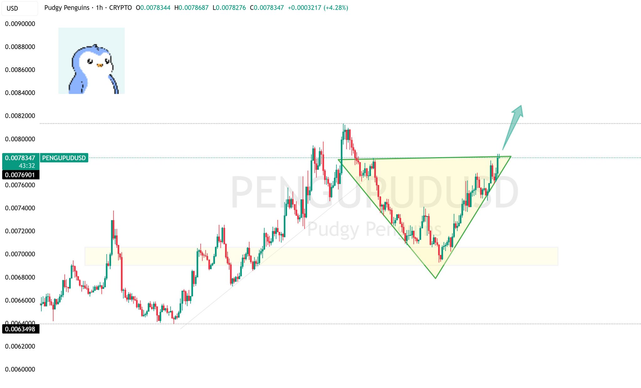 PENGU's fundamentals are strong and demand remains steady; breaking above $0.008 will drive further upside.