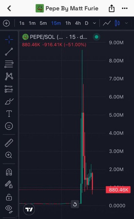 After bagsapp listed PEPE, the PEPE/SOL trading pair price has dropped sharply by 51%, warning of risk.