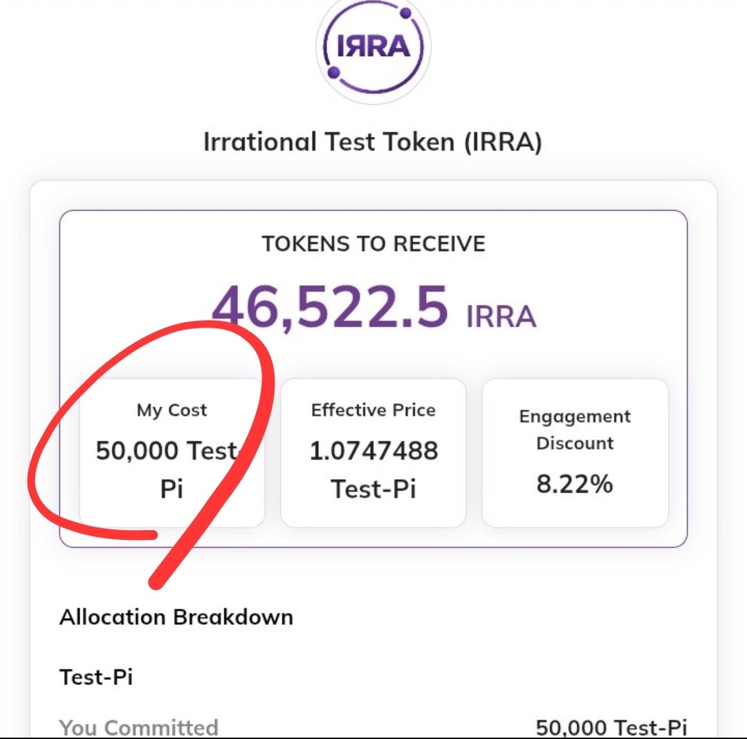 As we saw with the IRRA test token allocation, if we want to receive a large token allocation early on, we need to have enough Pi coins.