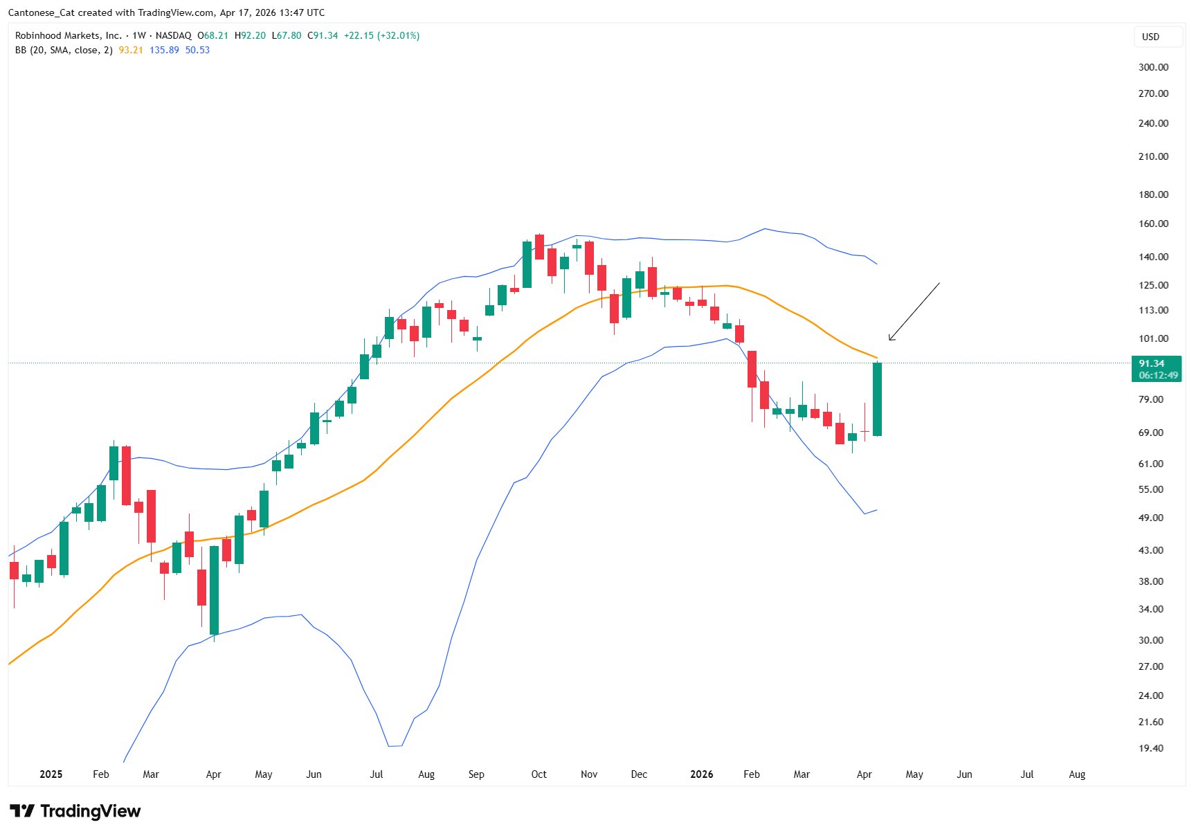 $HOOD weekly also close to 20 week SMA resistance here https://t.co/wiKU3jtEId