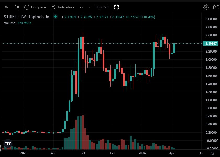 STRIKE's weekly chart looks good, the author expects it to break out to the 3 ADA zone.