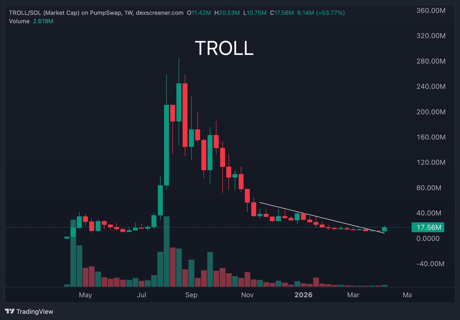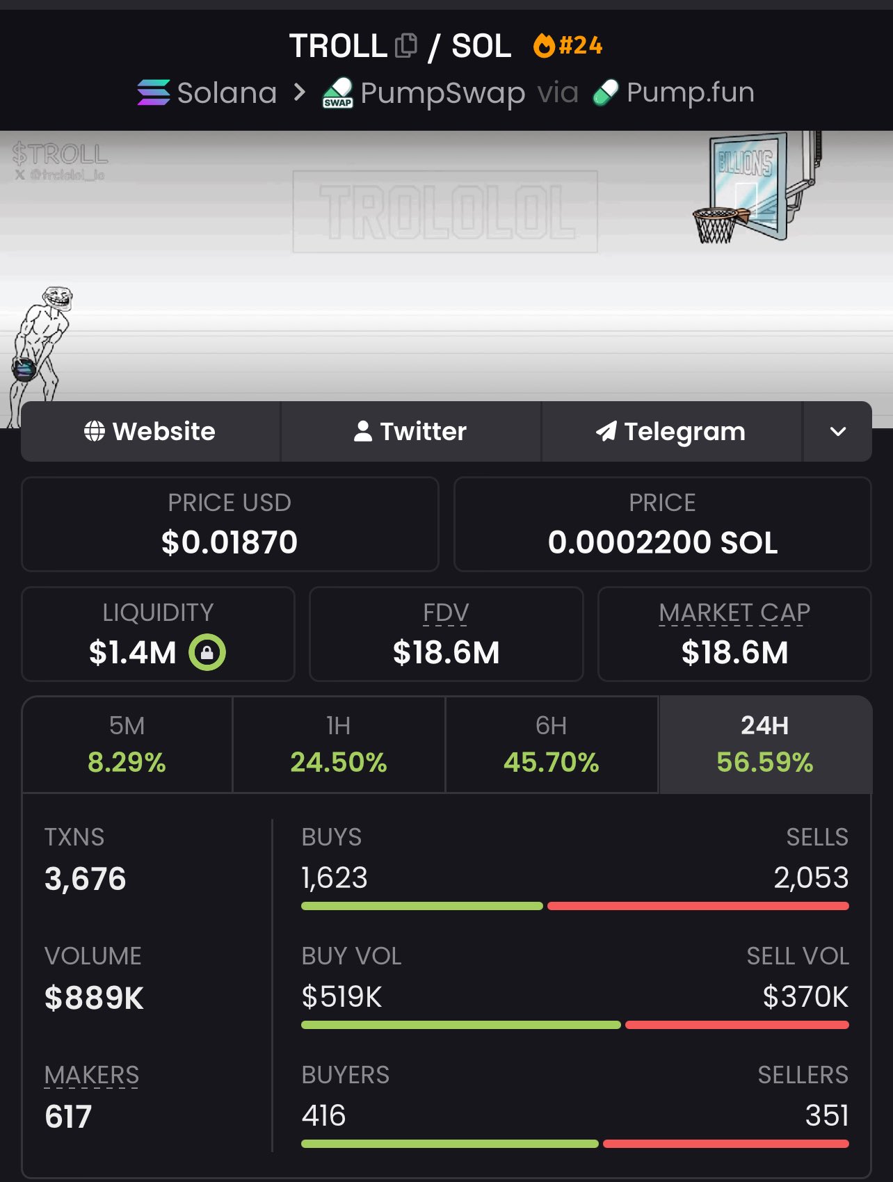 🚨 $TROLL (@Troll_) posts the biggest gains among the top 30 Solana memecoins in the past 24 hours. https://t.co/nnCxug0NC7