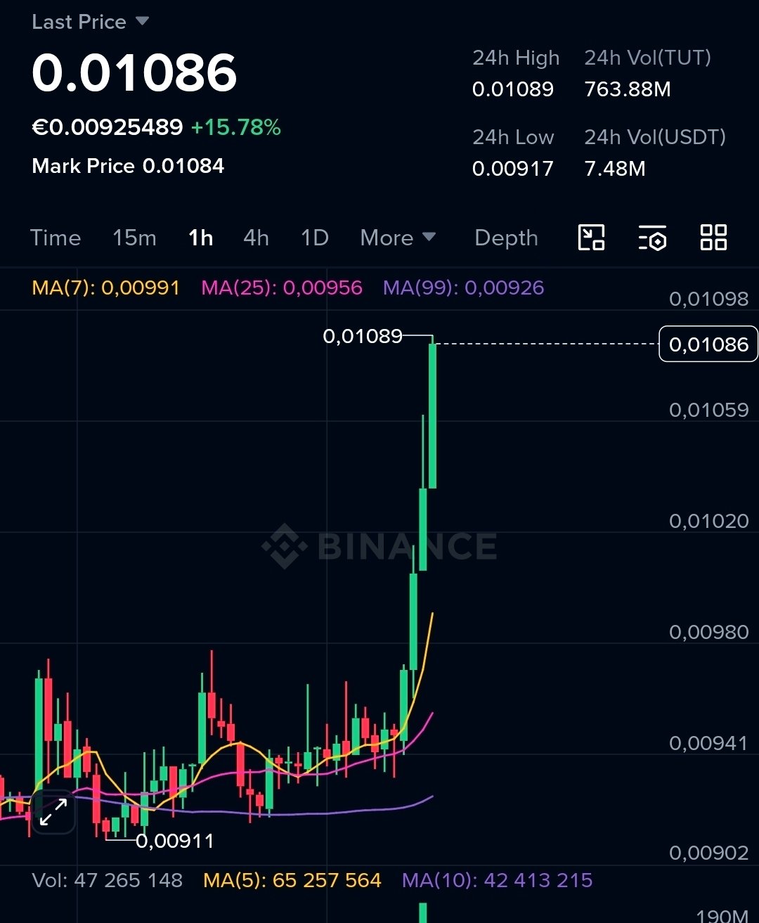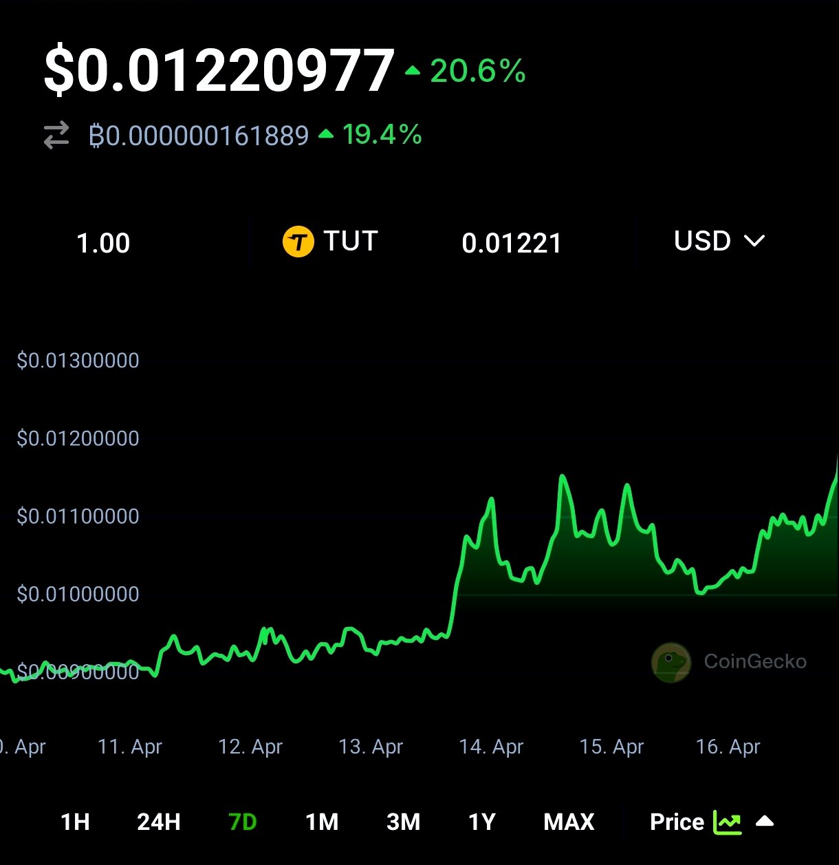 TUT price surged over 20%, sparking extremely bullish market sentiment.