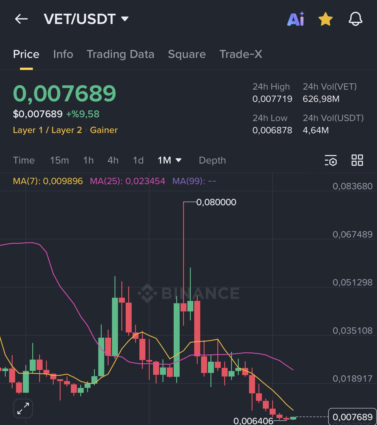 The author feels uneasy about the past performance of altcoins but is hopeful about VET's future trajectory.