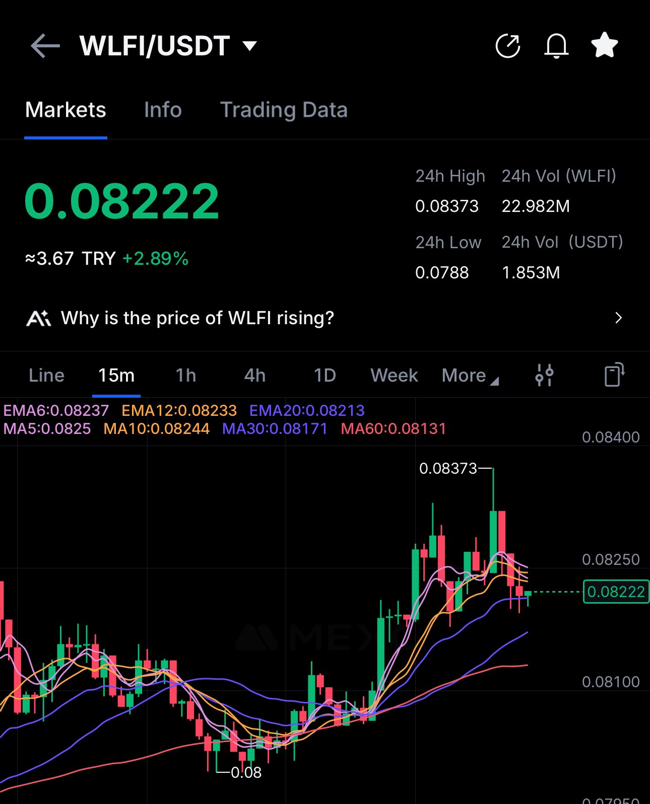 $WLFI doesn’t look very strong short term. Price is stuck around $0.082, with $0.0837 acting as resistance and $0.080–$0.081 as support. Feels more like indecisive consolidation for now.