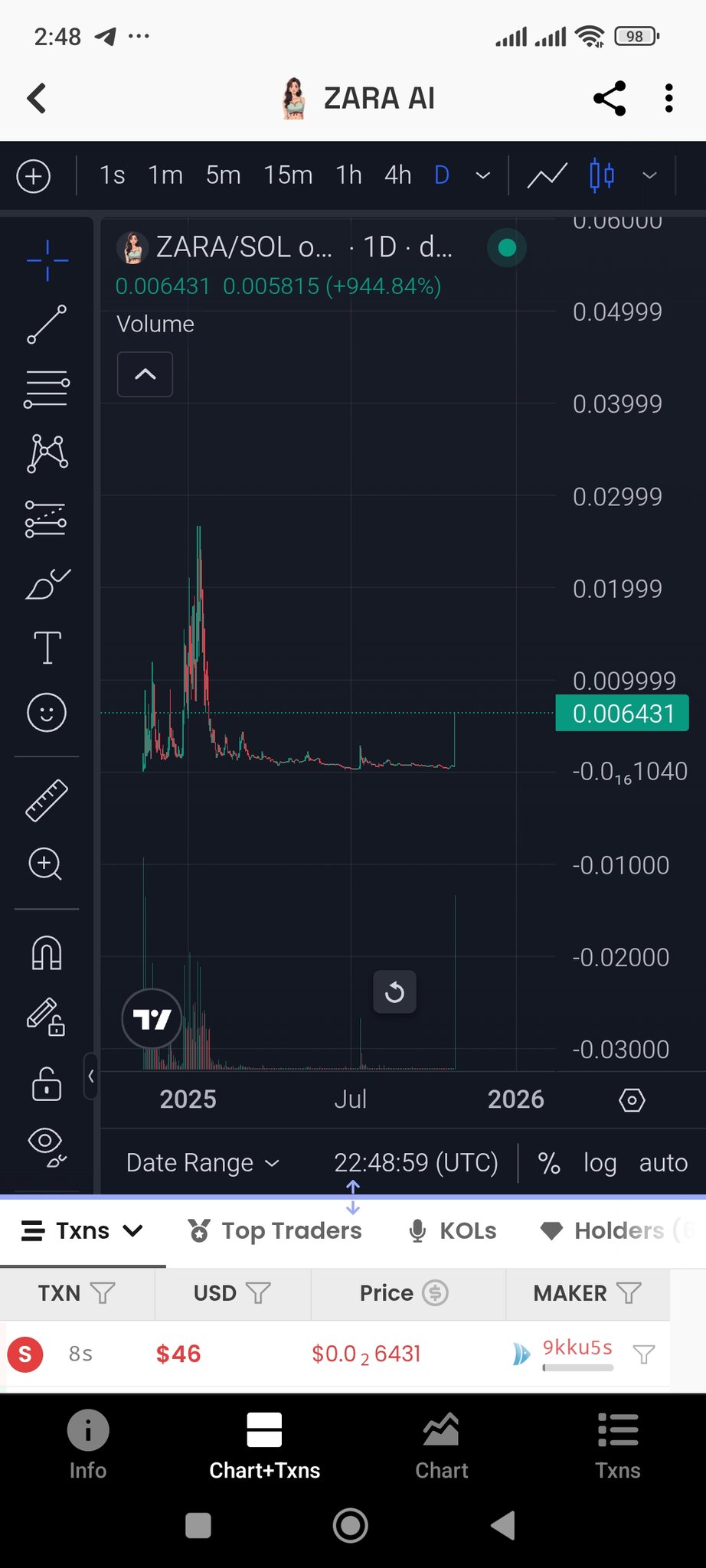 ZARA AI (ZARA) is a cryptocurrency and operates on the Solana platform. ZARA AI has a current supply of 647,295,257.579597 with 0 in circulation. The last known price of ZARA AI is 0.00039839 USD and is down -1.25 over the last 24 hours. It is currently trading on 10 active market(s) with $64,402.31 traded over the last 24 hours. More information can be found at https://zaraai.xyz.