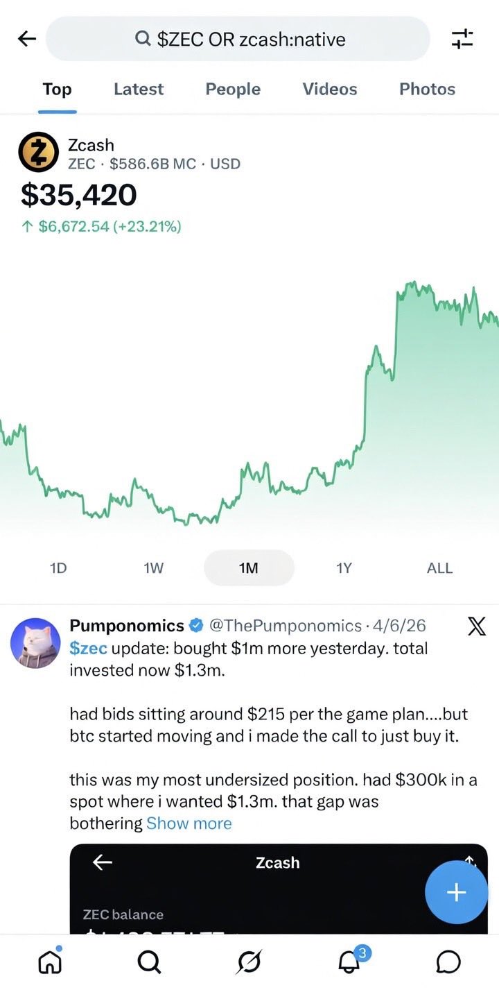 Woah X’s new Cashtag feature knows the future $ZEC price 👀 https://t.co/jeZ3ltCmfj